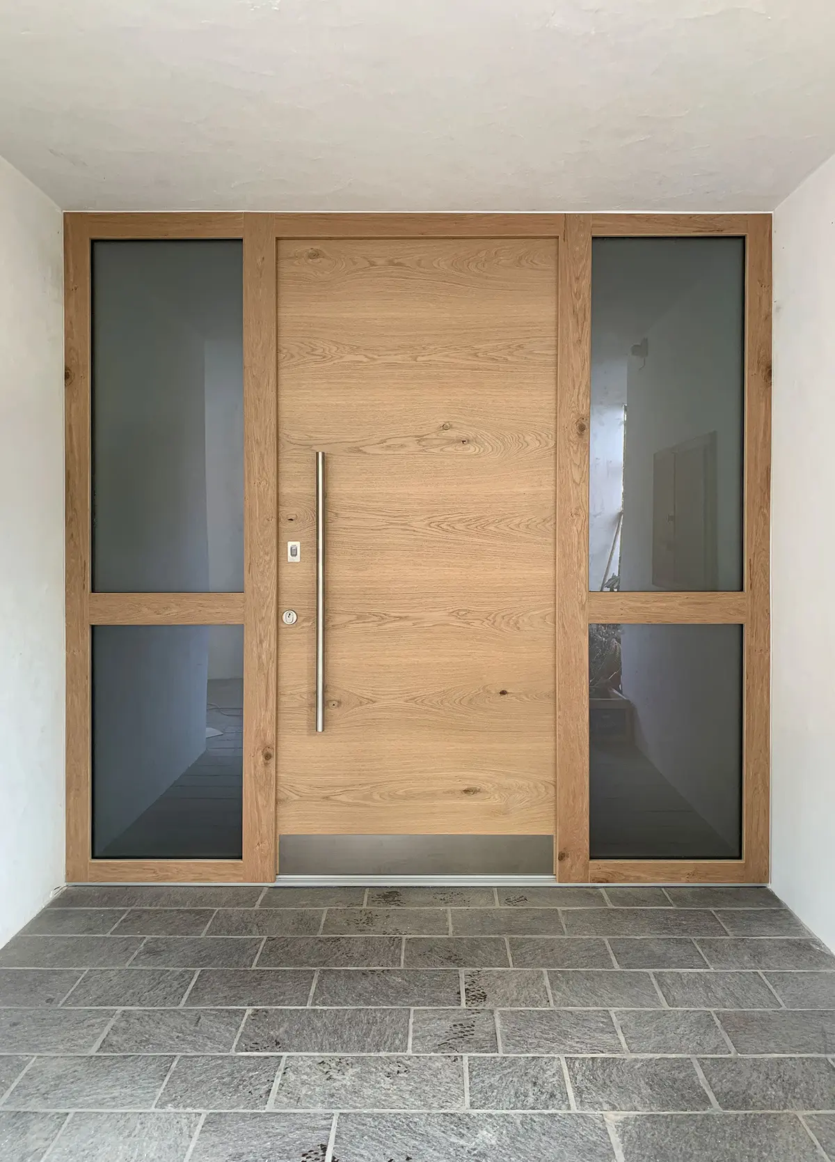 Jede Tür vereint elegantes Design, höchste Funktionalität und extreme Langlebigkeit. Unsere CE-zertifizierten Klimahaustüren aus Südtirol fertigen wir präzise nach Ihren Vorgaben. Federer Haustüren bieten maximale Einbruchssicherheit WK2, exzellenten Schall- und Wärmeschutz sowie ein Antiverzugssystem – für höchsten Wohn-Komfort. Ob Wohnhaus, Hotel, Büro oder öffentliche Einrichtung: Wir haben die passende Lösung.