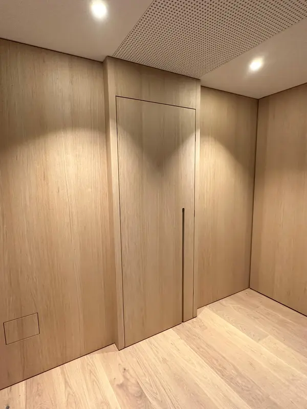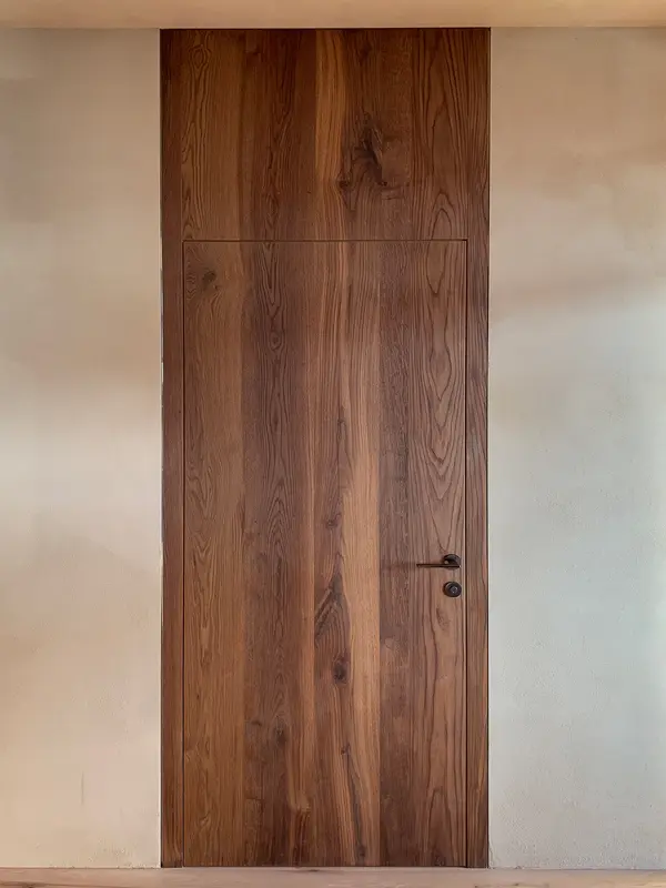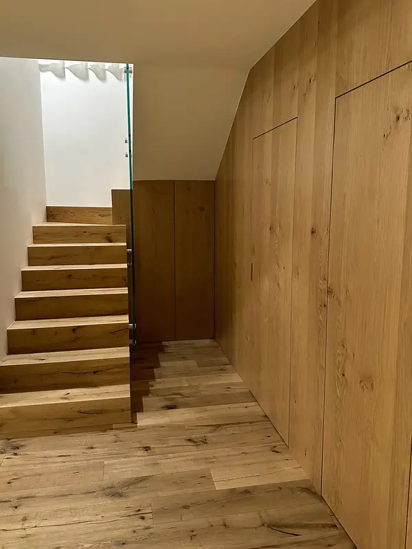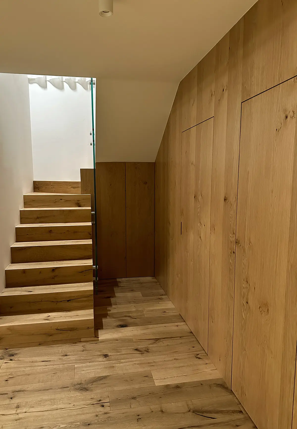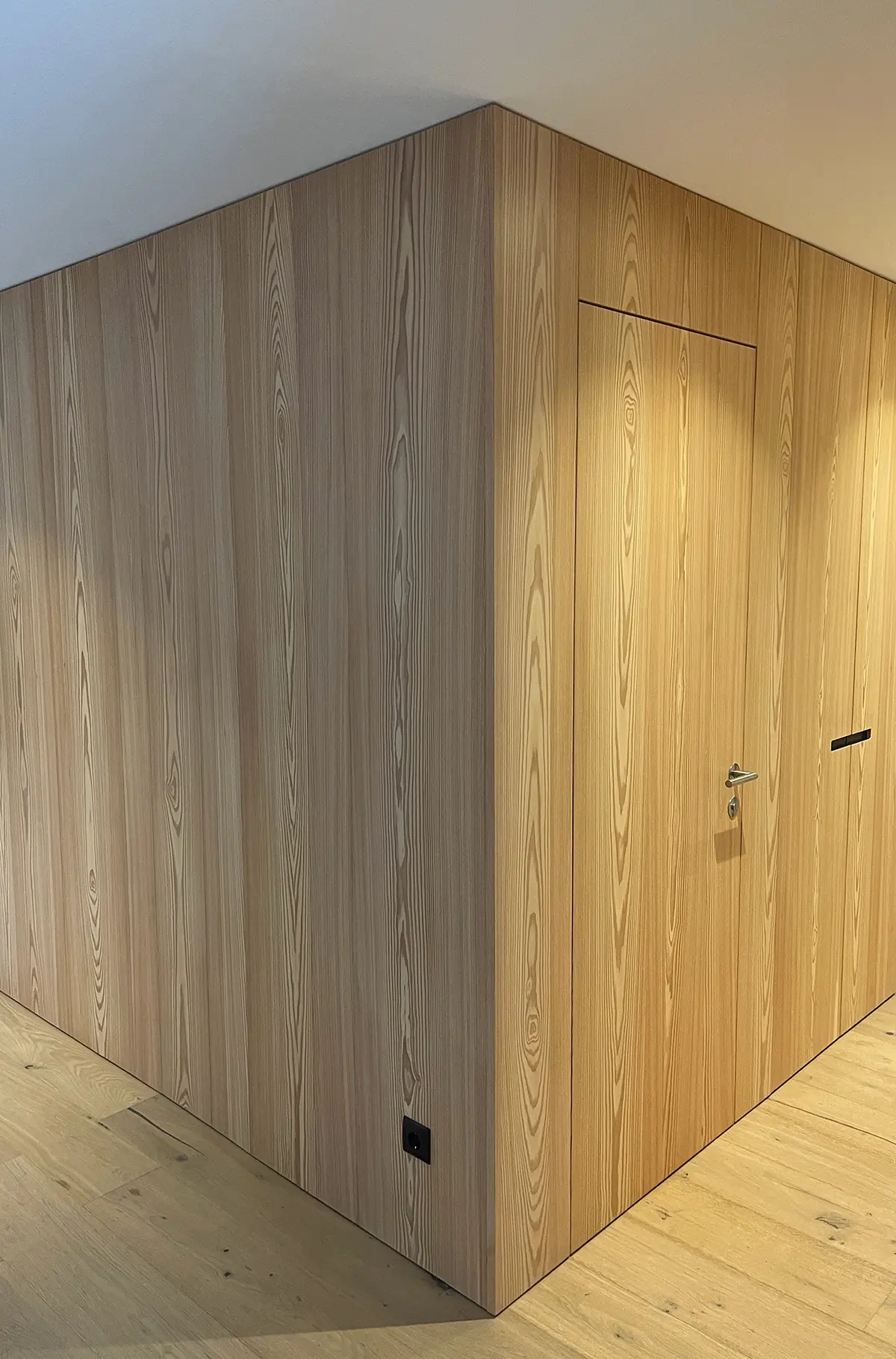 Unsere Schiebetüren fertigen wir millimetergenau nach Maß und montieren sie präzise. Ob als wandbündige Pocket Door oder außen laufende Variante – hochwertige Beschläge und Soft-Close garantieren flüsterleisen Lauf und Langlebigkeit.