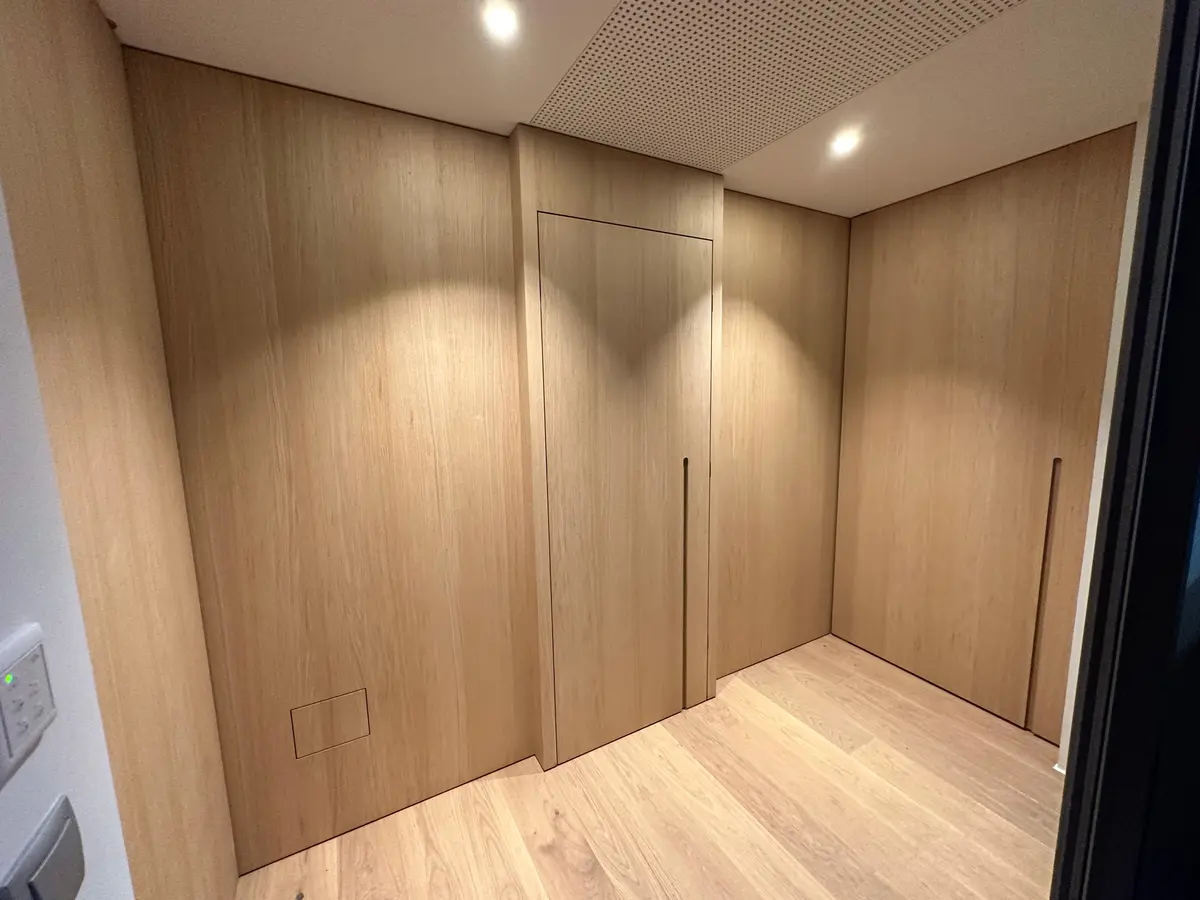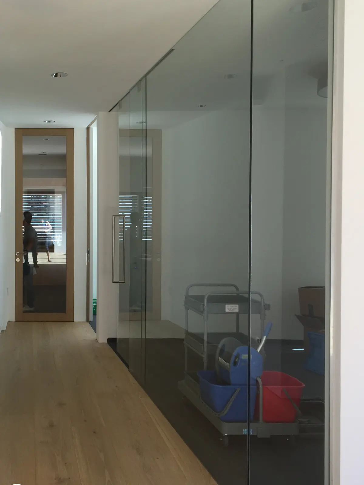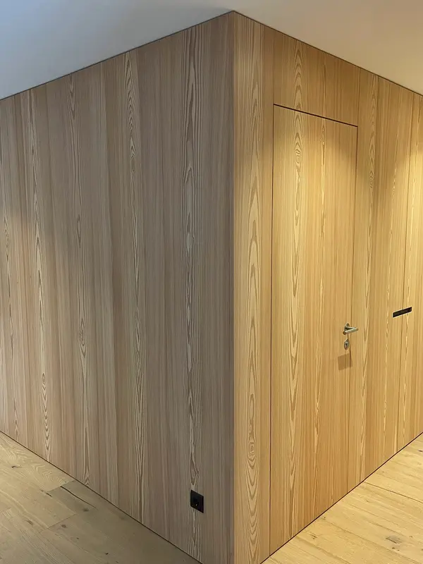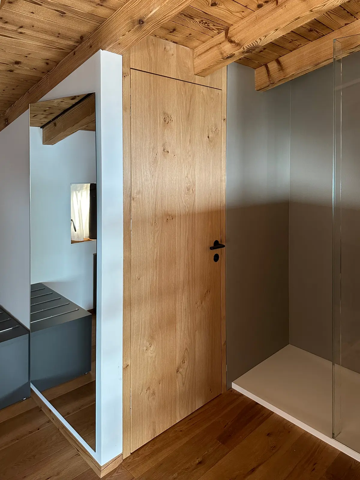 Unsere Schiebetüren fertigen wir millimetergenau nach Maß und montieren sie präzise. Ob als wandbündige Pocket Door oder außen laufende Variante – hochwertige Beschläge und Soft-Close garantieren flüsterleisen Lauf und Langlebigkeit.