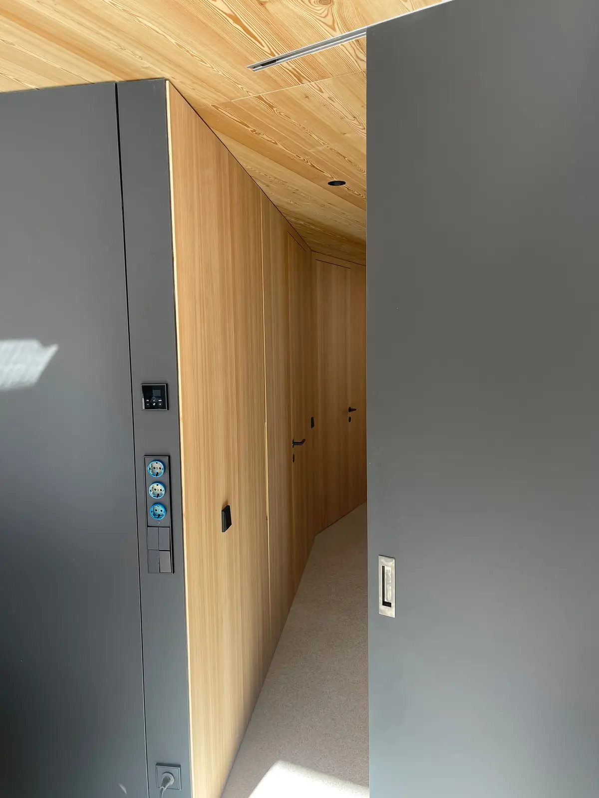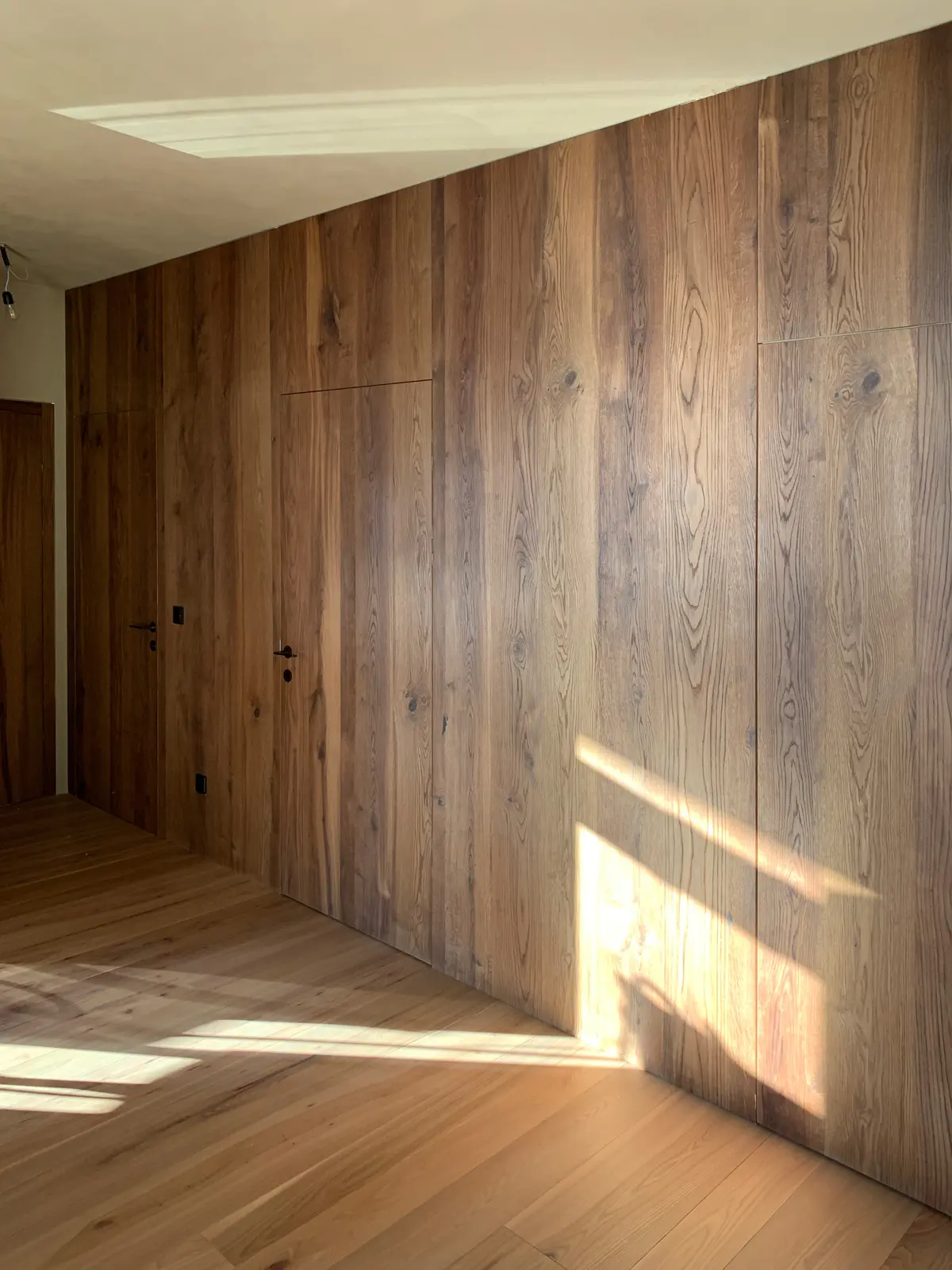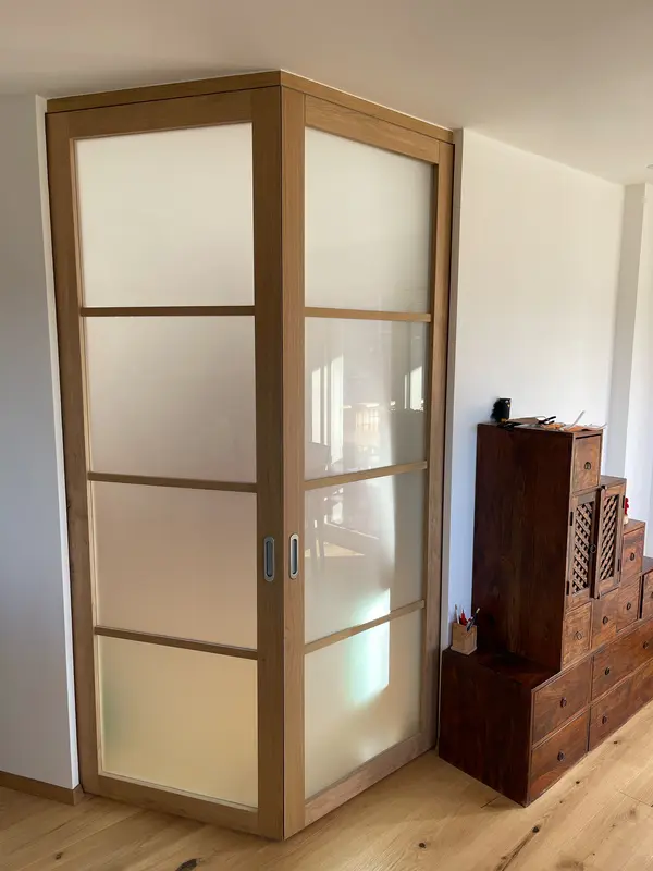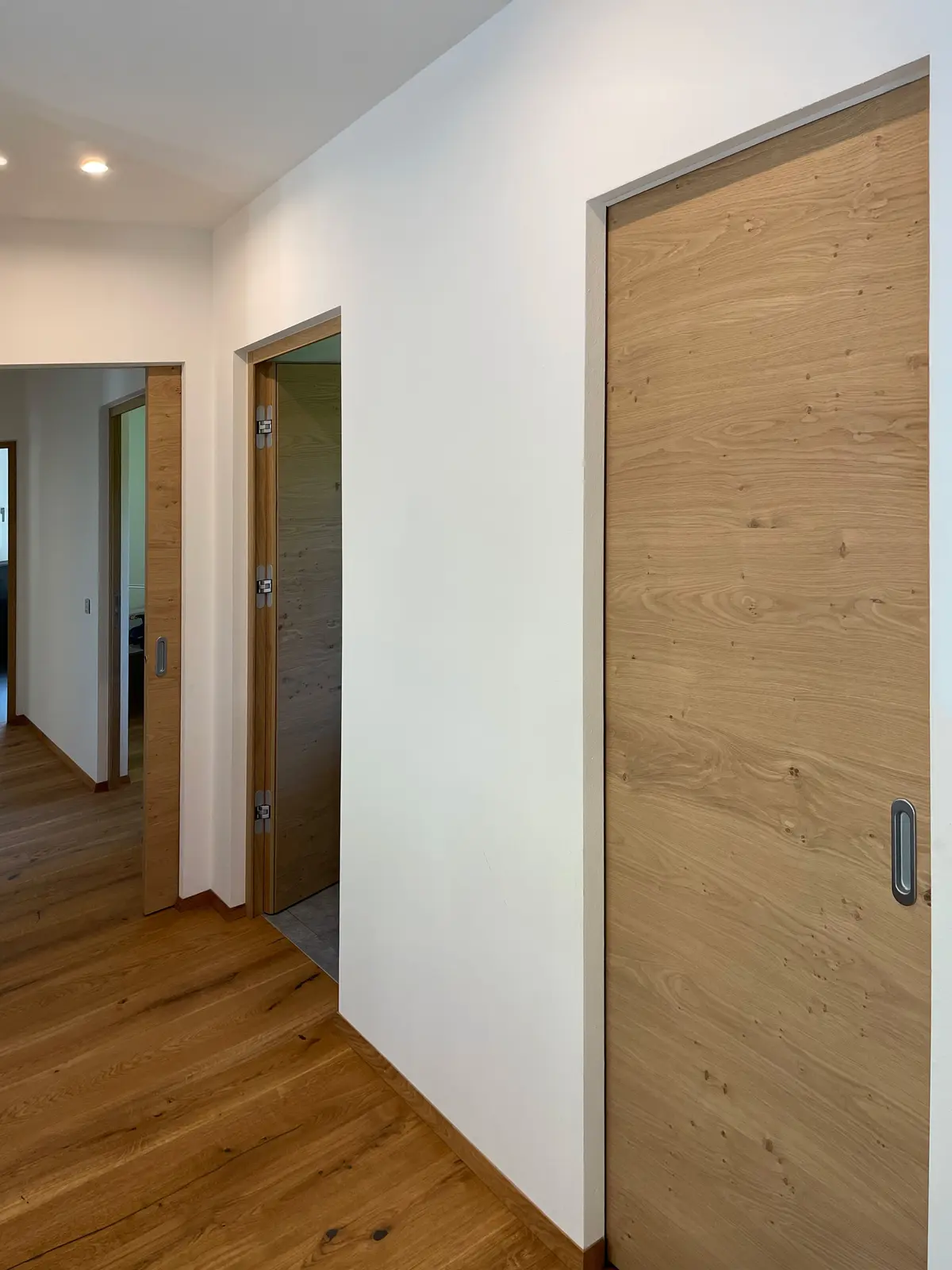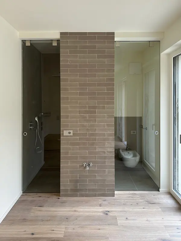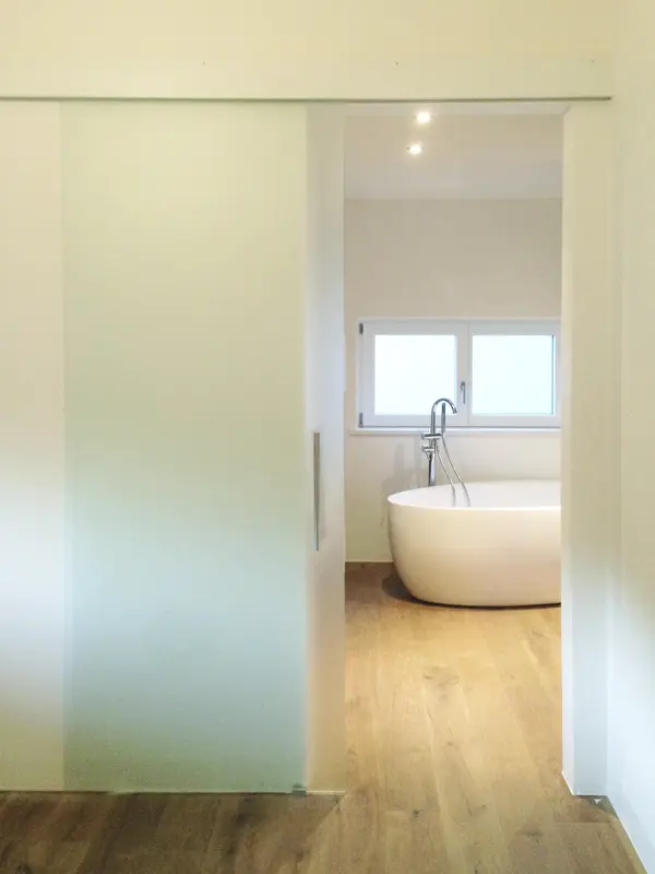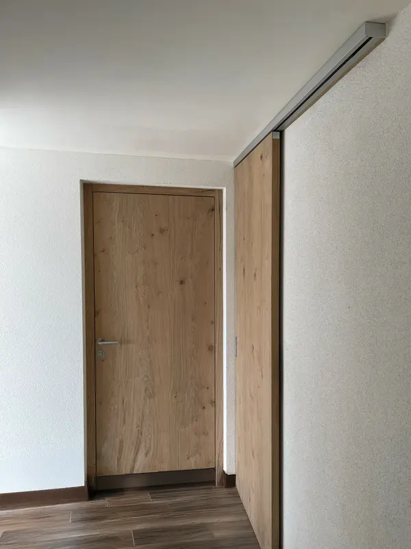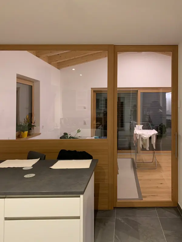 Die Schiebetüren aus unserer Tischlerei in St. Peter/Lajen verbinden platzsparende Funktion mit elegantem Design. Ob als außen laufende Variante vor der Wand oder platzsparend in der Wand integriert. Auf Wunsch statten wir Ihre neue Schiebetür mit fixem Seitenteil oder durchgehender Festverglasung aus. Hochwertige Laufbeschläge mit kugelgelagerten Rollen und Soft-Close-Dämpfern gewährleisten ruhigen, langlebigen Betrieb selbst bei großformatigen Elementen. So fügen sich Ihre neuen Schiebetüren harmonisch in jedes Interieur ein.